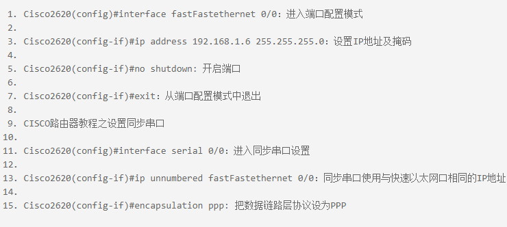键入config terminal,出现提示符Cisco2620(config)#,进入配置模式。